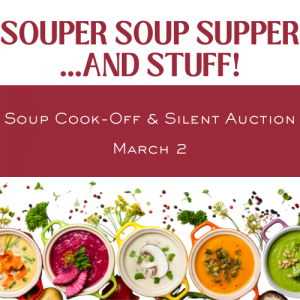 Join us March 2 after worship for a Souper Soup Supper ... and Stuff (a silent auction)! A soup cook-off! Taste soups for $0.25 each, then vote for your favorite by purchasing a cup or bowl with a donation. The...